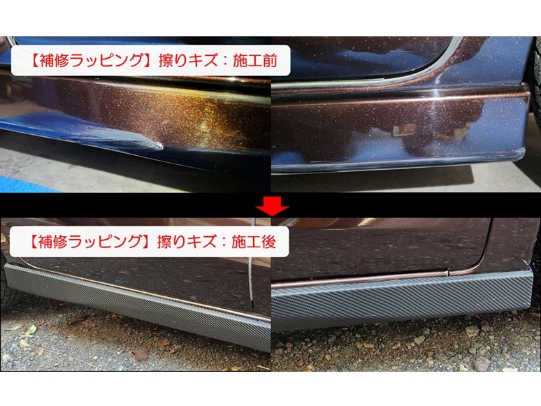 全体の色だけではなく、部分的にパーツだけや劣化による樹脂やすり傷などの補修的ラッピングなど化粧直し的な作業も喜んでお受け致します。